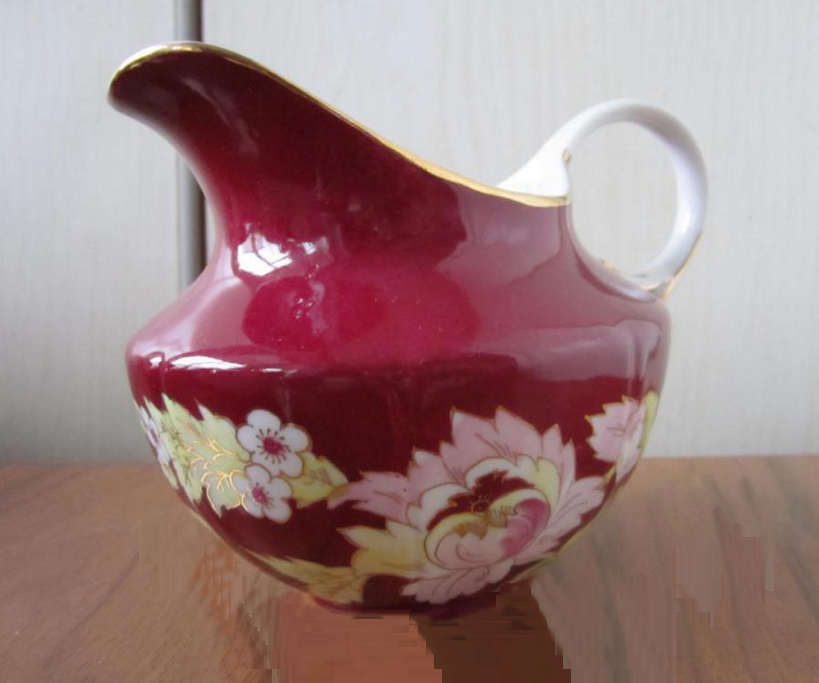 Сливочник\молочник сервиза. Относительно формы можно сказать всё то же, что и о чайнике. Само тело предмета напоминает приплюснутую вазочку с вытянутым вверх с одной стороны "воротничком".