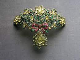 Эпоха рококо — время глубоких декольте. Такая мода привела к изменению ювелирных трендов: дамы стали носить эффектные ожерелья и колье, усыпанные драгоценными камнями. Центр украшения обычно венчала звезда или каплевидный кулон.