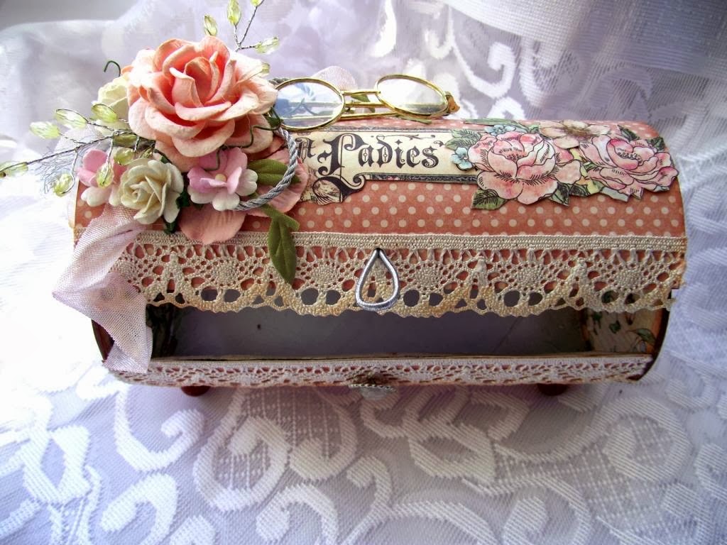 На край крышки приклеиваем кружево, чтобы в закрытом виде изделие выглядело красиво.
