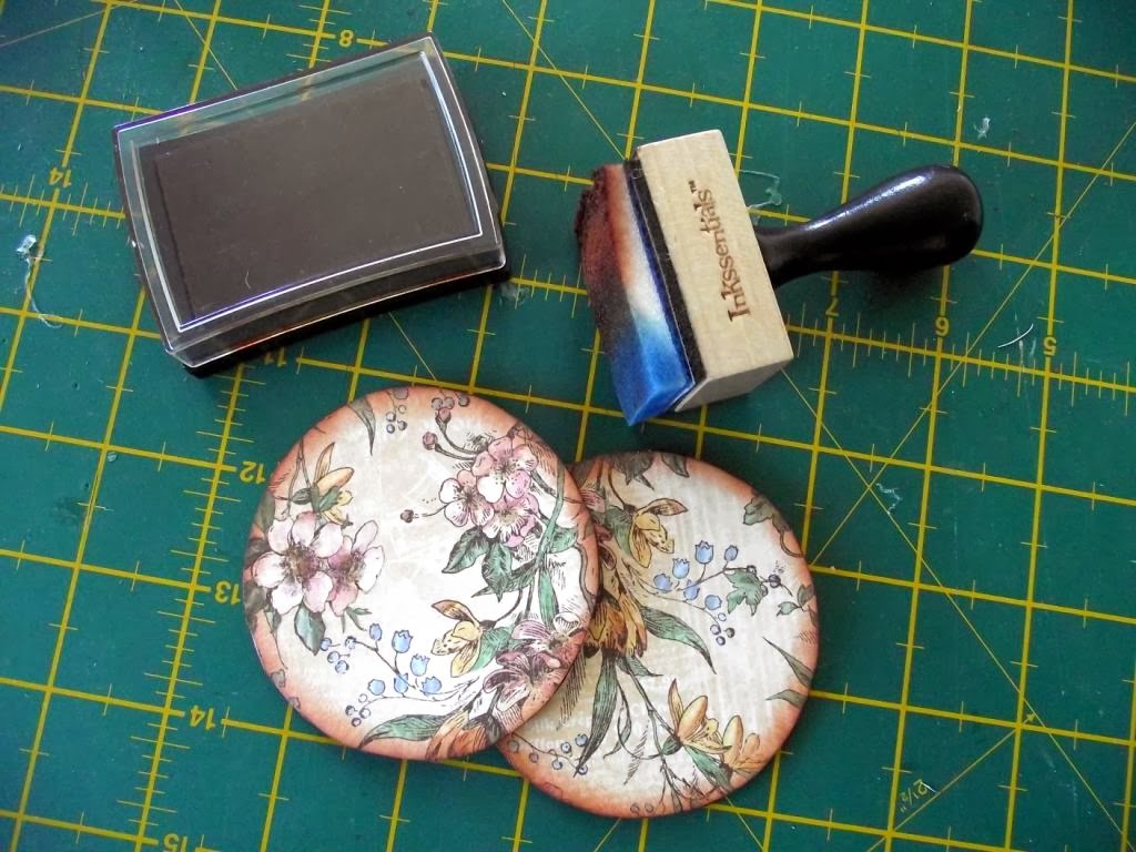 Заклеиваем круги бумагой и тонируем края.