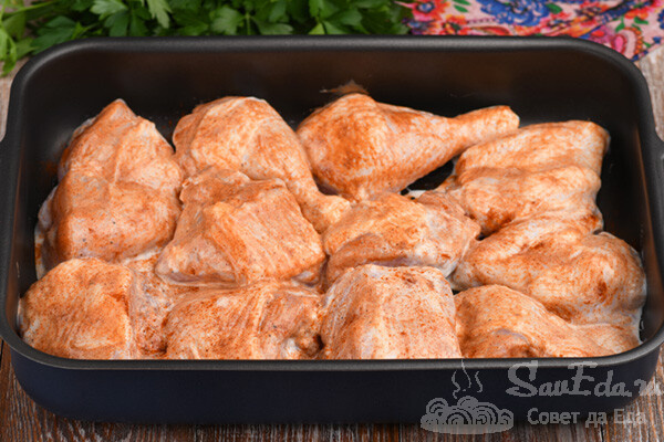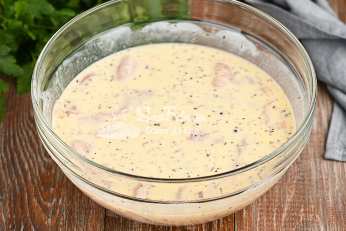 Хорошо перемешиваем, миску накрываем и отправляем в холодильник минимум на 2 часа. Специи и травы можно брать любые по вкусу.
