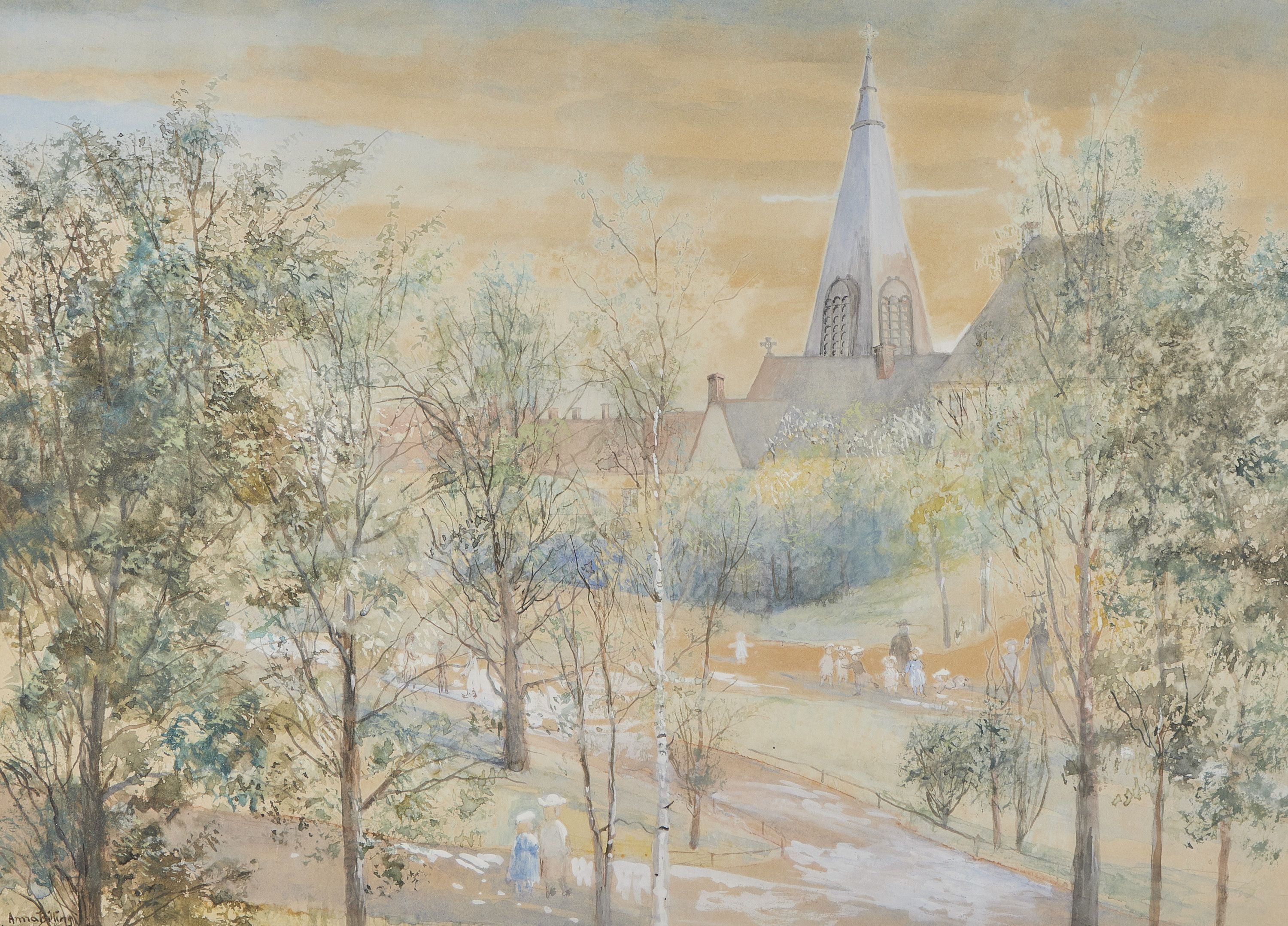 Акварель шведской художницы Анны Биллинг (1849-1927) «Вид на Страндваген» (1888)