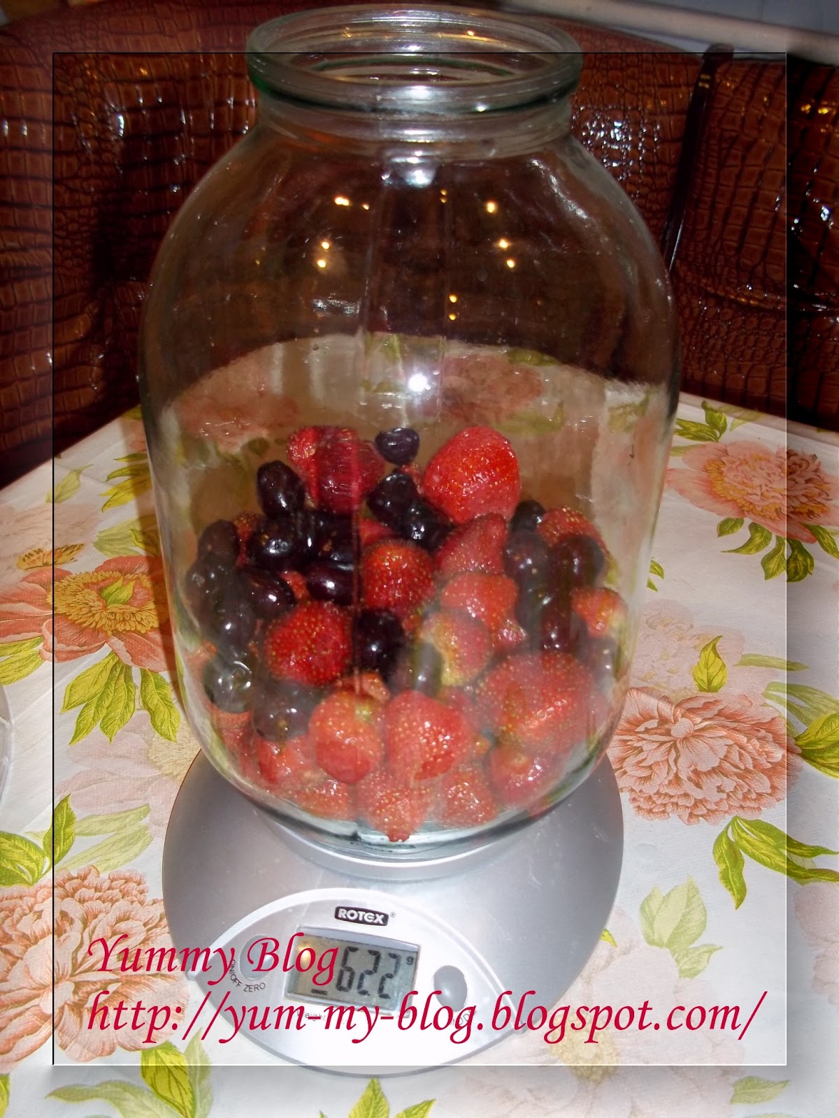 По этому рецепту также закрываю на зиму компот из домашнего винограда и малины. Можно также смешивать ягоды между собой, например клубнику с черникой или вишней, черешней, малину с красной или черной смородиной, клубнику с малиной и т.д.