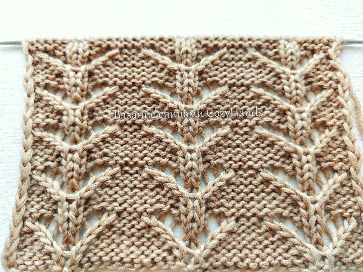 Интересный узор спицами в виде ажурных дорожек на изнаночной глади. Можно использовать при вязании джемперов, пуловеров, кардиганов, жилеток, летних маечек, палантинов, носков и так далее.