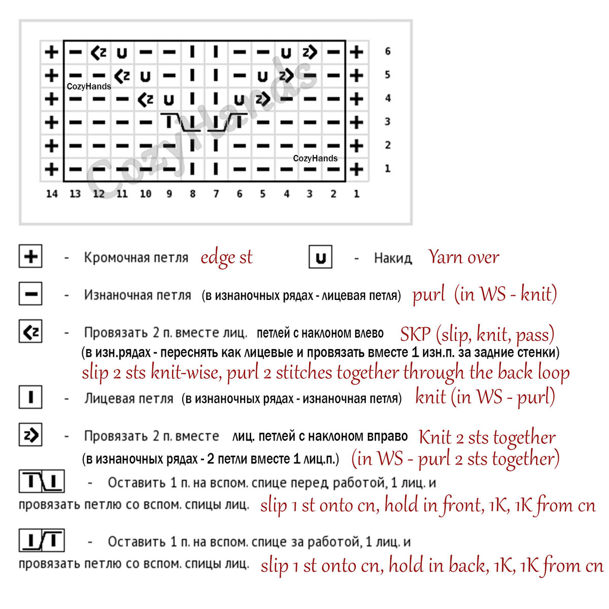 Далее повторять вязание с 1 по 6 ряд.
