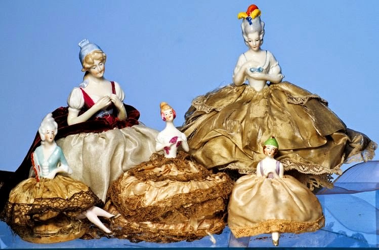 Обаяние этих очаровательных half-dools (полу-кукол) витает в воздухе уже более двух столетий. Первое письменное упоминание о них датируется 1747-м годом. Во времена королевы Виктории (1837-1901) этими куколками украшали шкатулки, игольницы, кувшины. Им шили прелестные юбочки-мешки для тайного хранения дамских штучек в будуарах, а потому куколки стали признаком хорошего вкуса изобретательных знатных дам. Но наиболее часто этими полу-куклами украшали именно игольницы, за что они и получили свое самое популярное название - "куколки-игольницы".