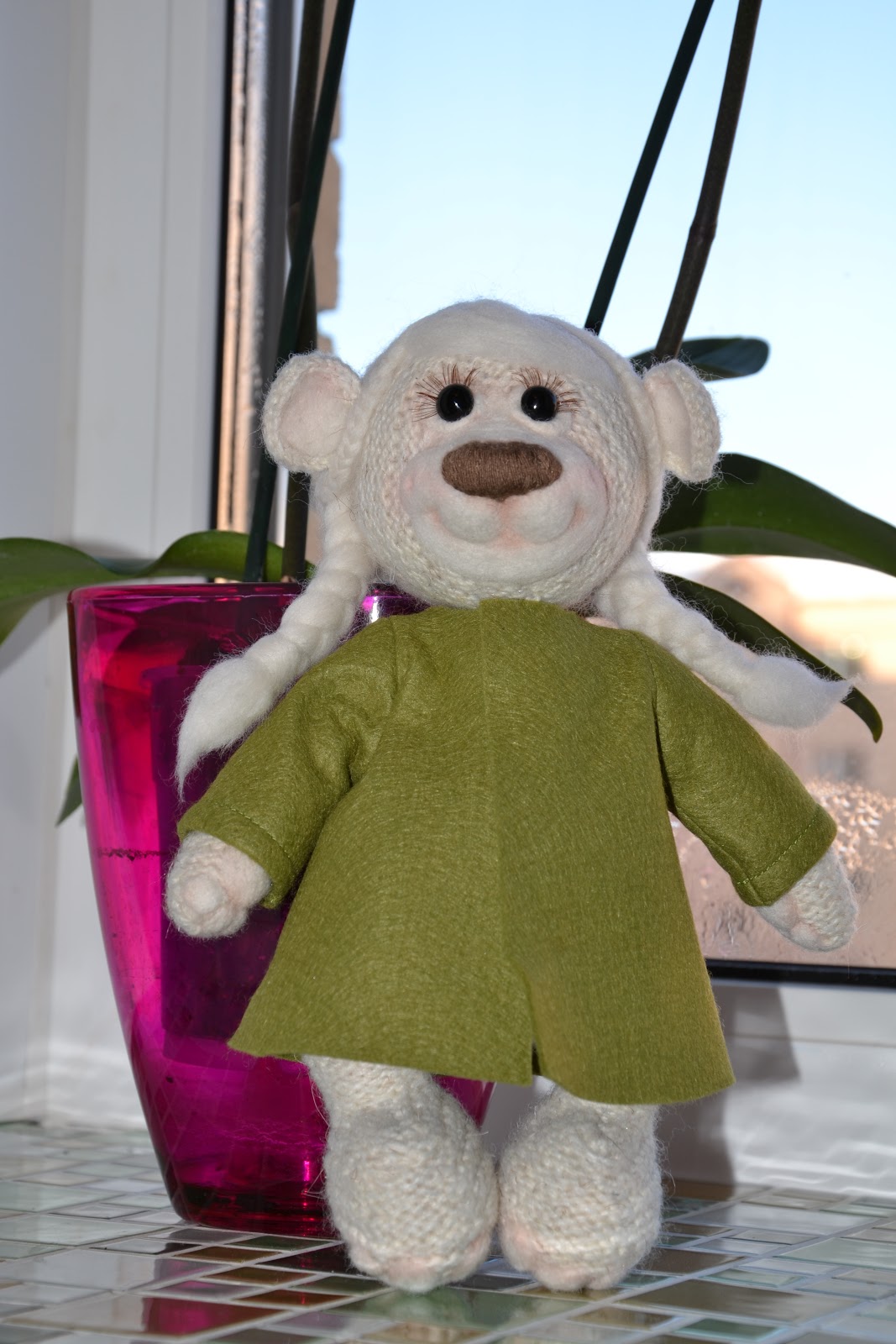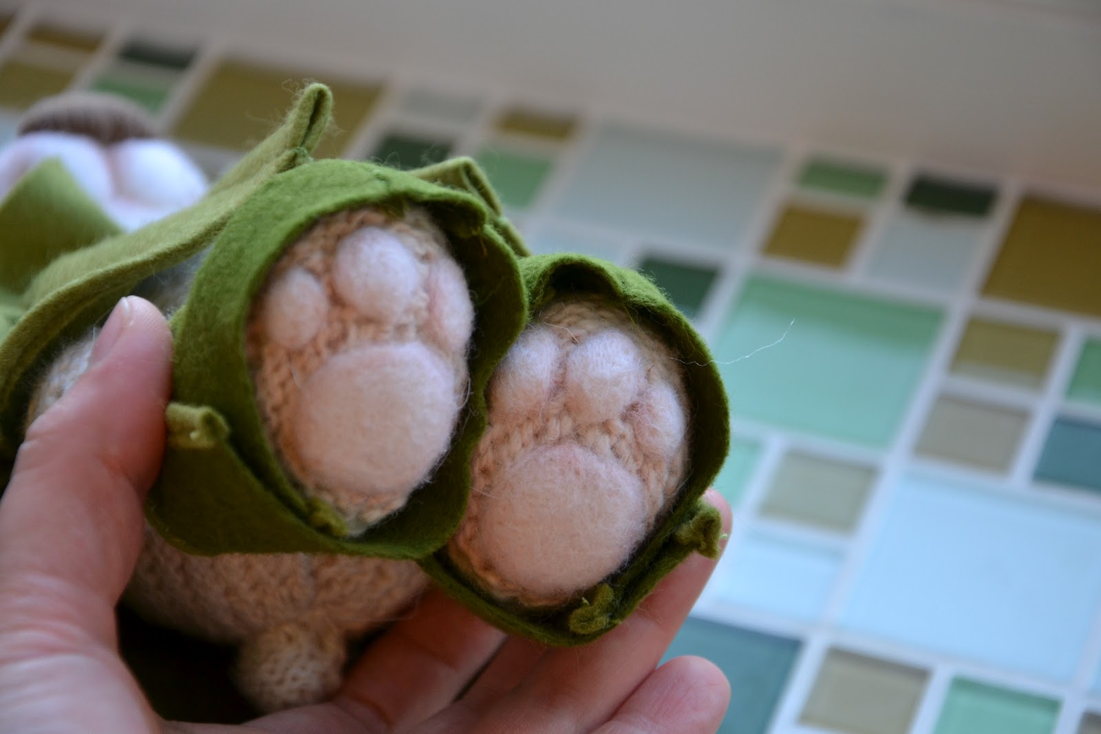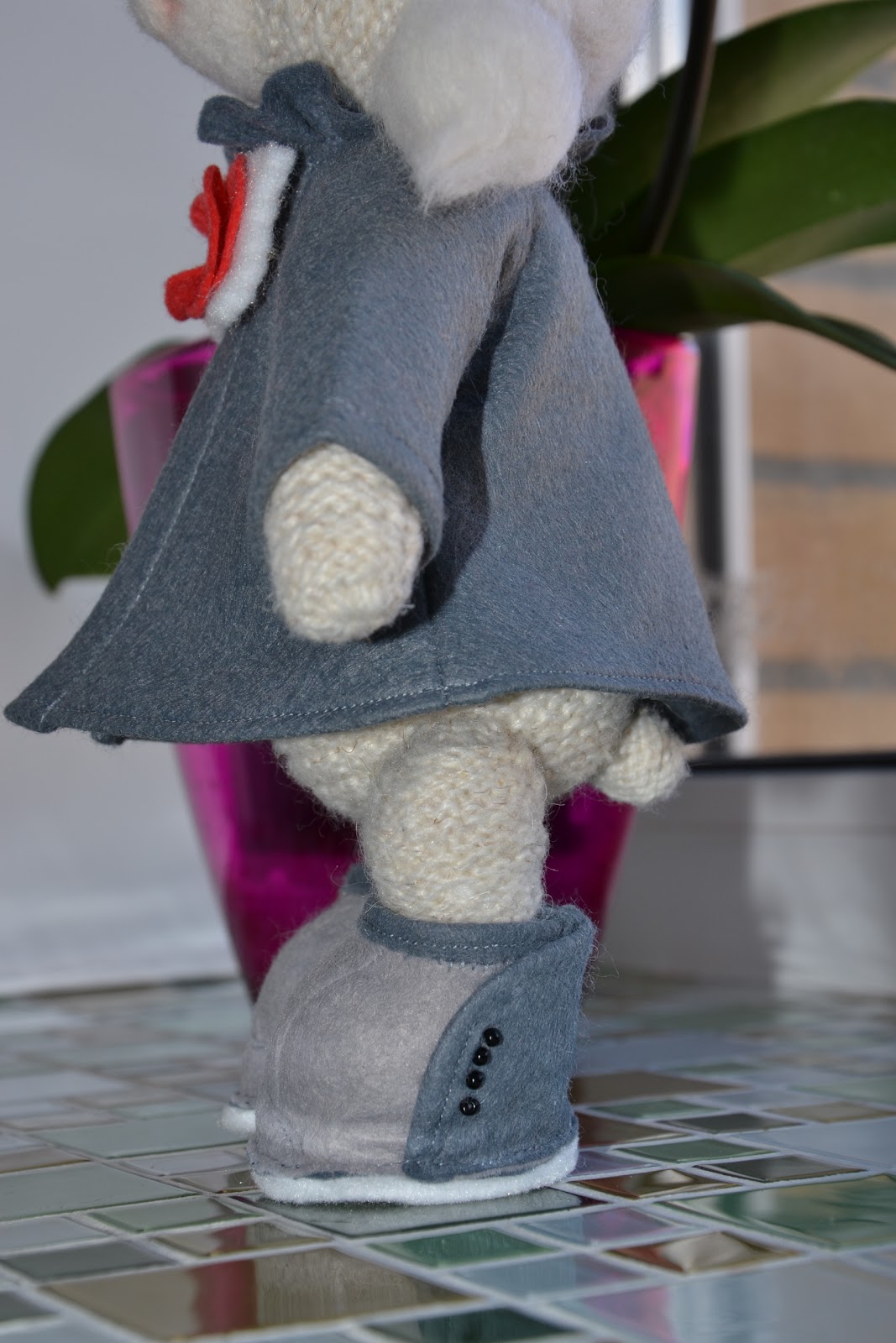 Ну вот и готово, в таких ботах медведики хорошо стоят без опоры. Одежки легко снимаются-одеваются.