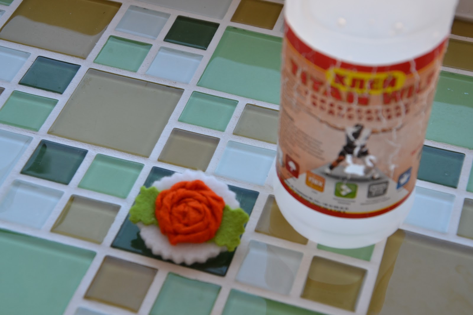 приклеить цветочек из тонкого фетра. Клеевого пистолета у меня нет, поэтому пользуюсь Титаном и очень люблю этот клей.