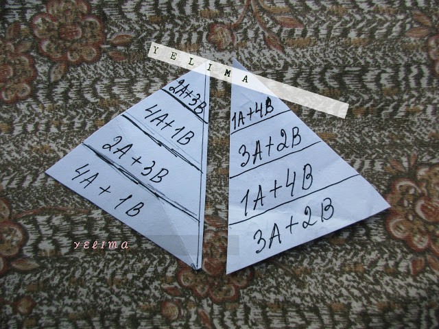 первая формула:3А+1В (означает,что мы берём 3 волокна цвета-А, 1 волокно цвета-В).