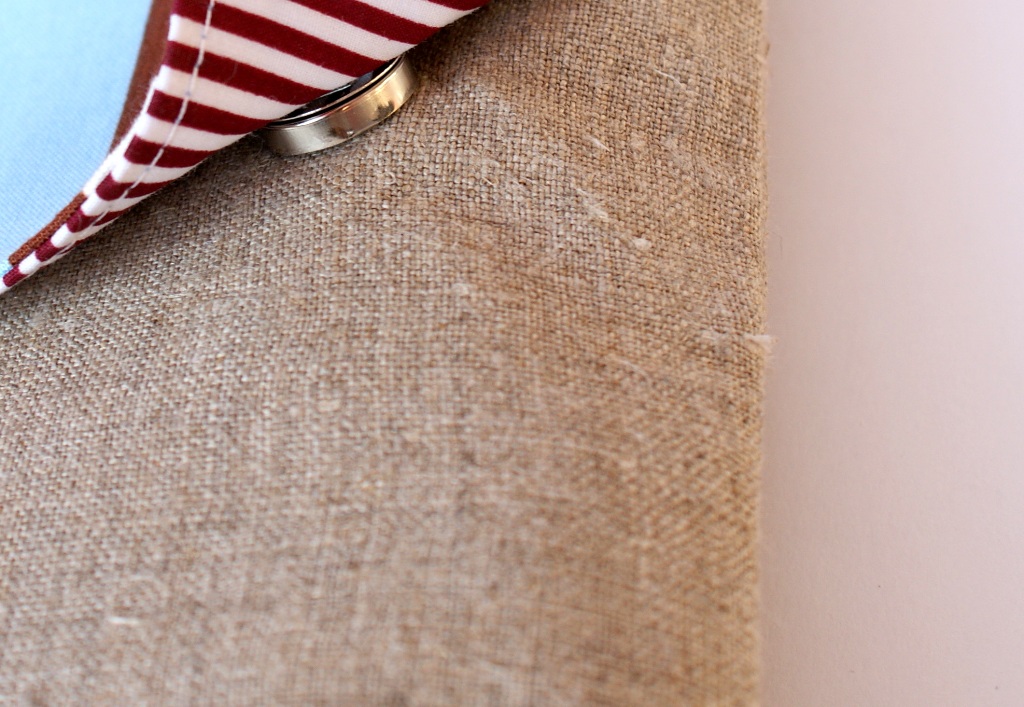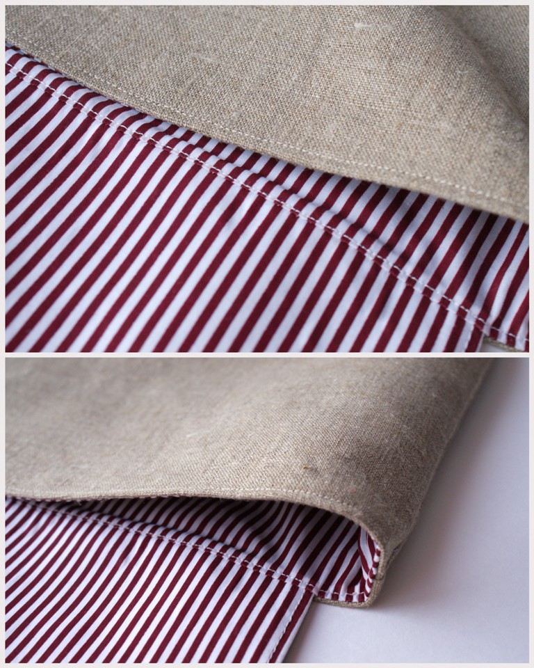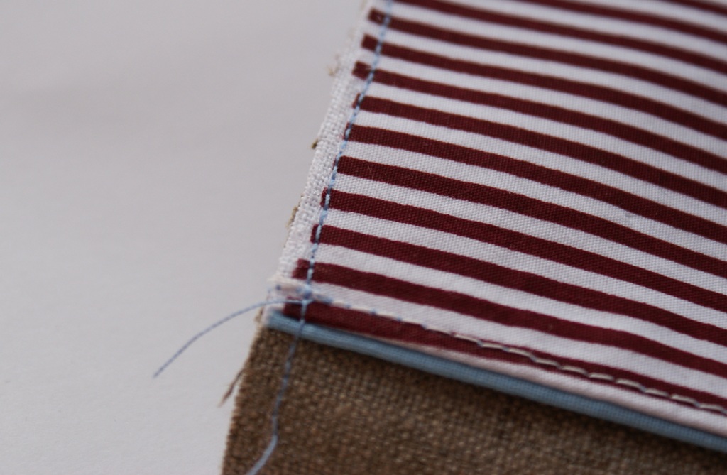 На фото видно, что для основной ткани я выбрала холст, для клапана – американский хлопок в полоску, подкладка обычная бязь.