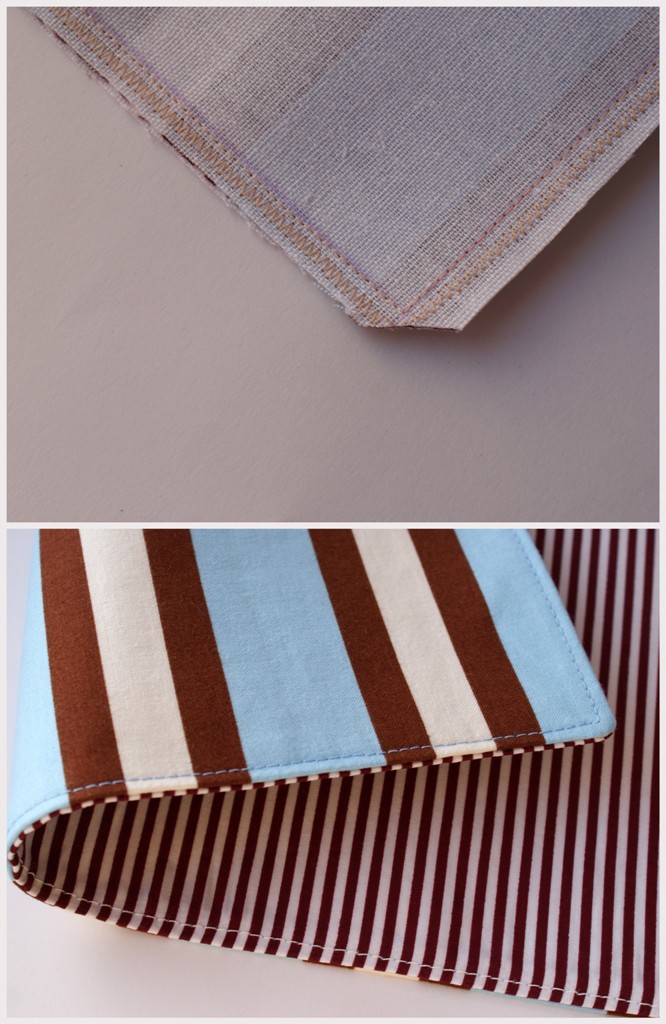 Складываем лицевыми сторонами друг к другу лицевую и внутреннюю детали и прошиваем по трём сторонам. Обрабатываем край зиг-загом, уголки срезаем.