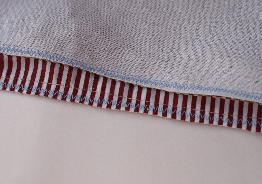 Сшиваем детали, обрабатываем край зиг-загом, обрезаем лишнее (если есть).