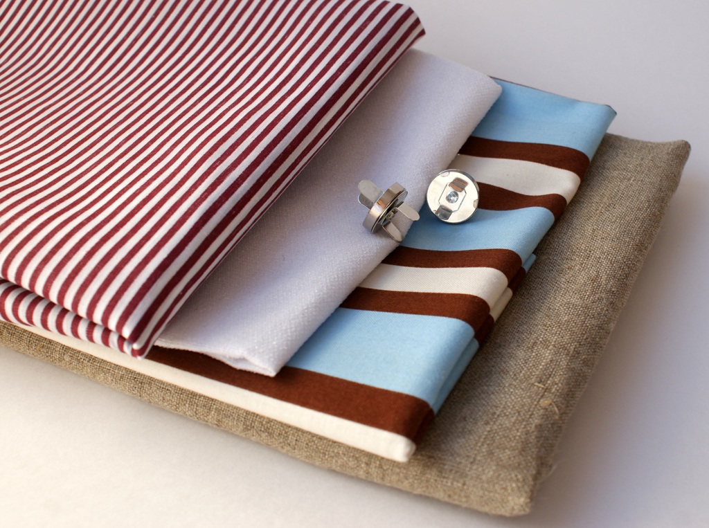 Для жесткости стенок чехла можно между двумя деталями ткани проложить платик, к примеру от папок. Можно также использовать синтепон. Шить лучше из прочной плотной ткани. Не забудьте сделать ручки для удобства.