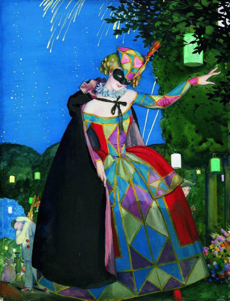 С начала XVIII века начались итальянские гастроли в России. А к концу века во всех московских и петербургских домах устраивались пышные костюмированные венецианские карнавалы. Следующим бум комедии дель арте пришелся на XX век. Величайшие артисты и художники обратили к ней свой взор и стали черпать вдохновенье, переосмысливая образы, делая их многогранными. Блок переписал комедию в трагедию «Балаганчик». Мейерхольд поставил пантомиму «Шарф Коломбины» и создал практику биомеханики – актерскую гимнастику для проработки сценических движений. Пьеса Гоцци «Принцесса Турандот» в театре Вахтангова идет с 1922 года.
