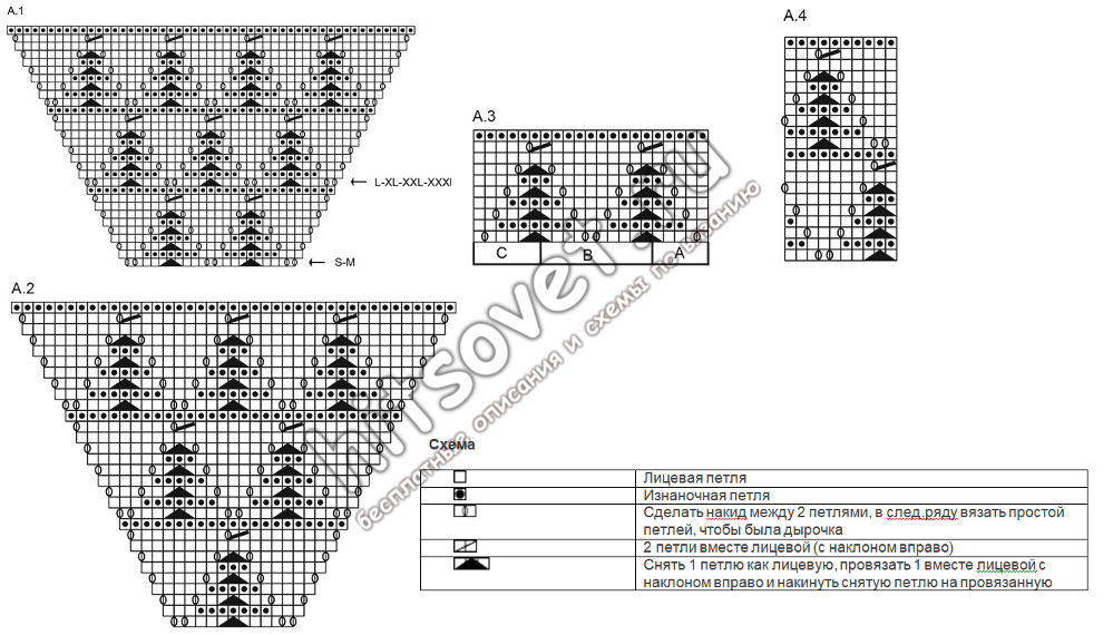 Когда схемы А.1 и А.2 будут провязаны в высоту один раз, продолжить вязание по схеме А.3.