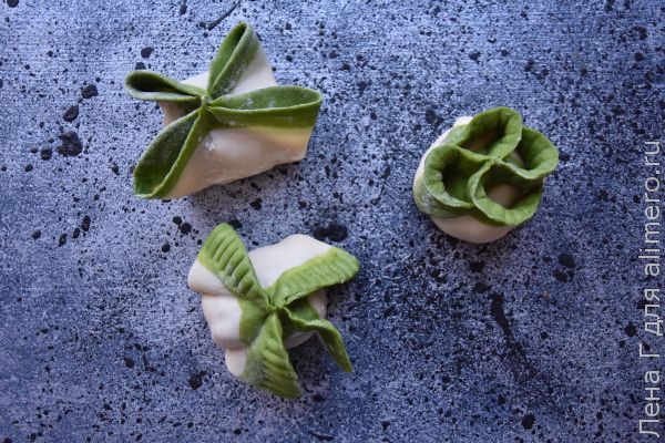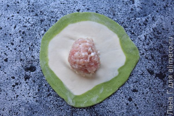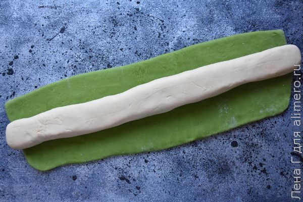 Аналогичным образом приготовить зеленое тесто.