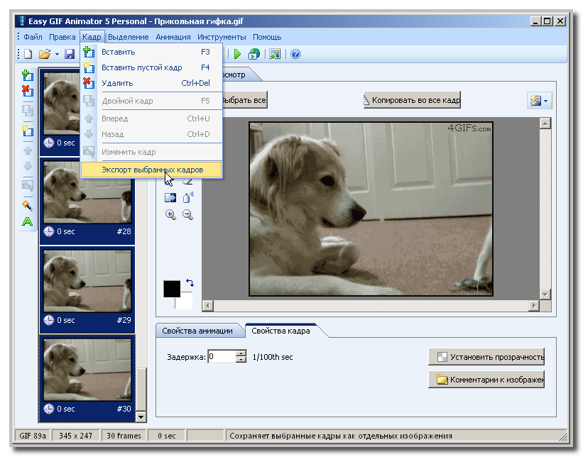 1. С помощью программы Easy GIF Animator получаем отдельные кадры, из которых состоит GIF анимация и сохраняем эти кадры в отдельной папке.
