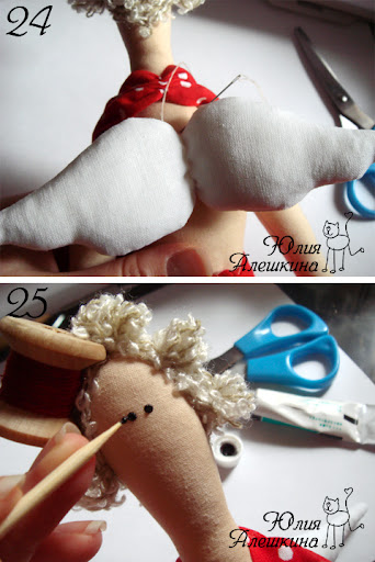24. Крылья набили, зашили место набивки потайным швом. Пришиваем их кукле