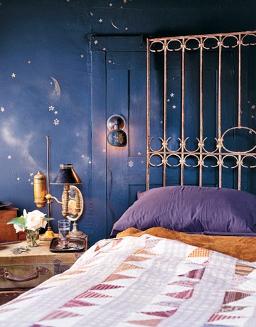 Хорошая идея — оформить кованное изголовье. При этом можно сделать акцент на стену за кроватью.