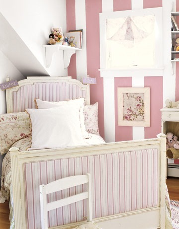 Полоски в изголовье кровати в сочетании со цветом стен — они могут быть как тканевые так и просто покрашены.