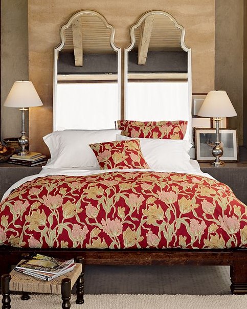 Красивое зеркало, в стиле вашего интерьера — в качестве изголовья кровати, несомненно станет гвоздем интерьера спальни.