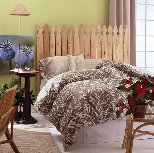 Еще одна идея для такого интерьера — изголовье изгородь или забор.