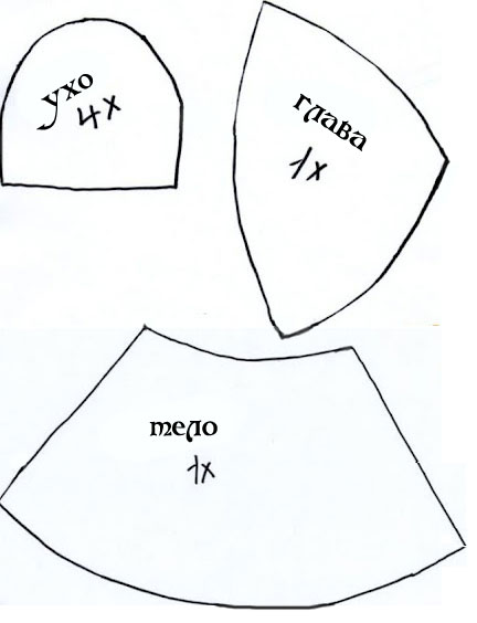 Кроим детали: тело, голову, уши (выкройку можно скачать ниже).