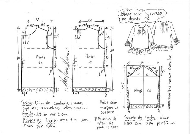 Выкройка летней блузки простого кроя (Размеры 38-52 Евро)