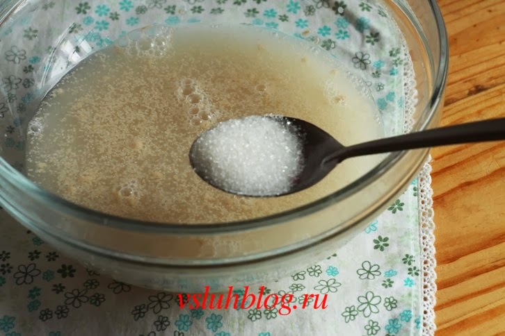Для того чтобы сделать «счастливую» мумию, сначала нужно замесить тесто. Возьмите указанное в рецепте количество теплой воды, всыпьте туда дрожжи и столовую ложку сахара. Перемешайте слегка и оставьте, чтобы дрожжи успели раствориться.