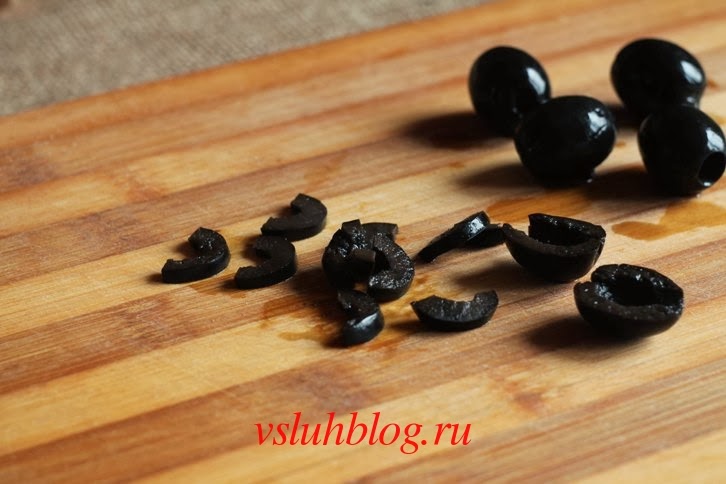 Для изготовления пауков оливки разрежьте напополам, каждая из них будет спинкой. Для ног порежьте половики поперек.