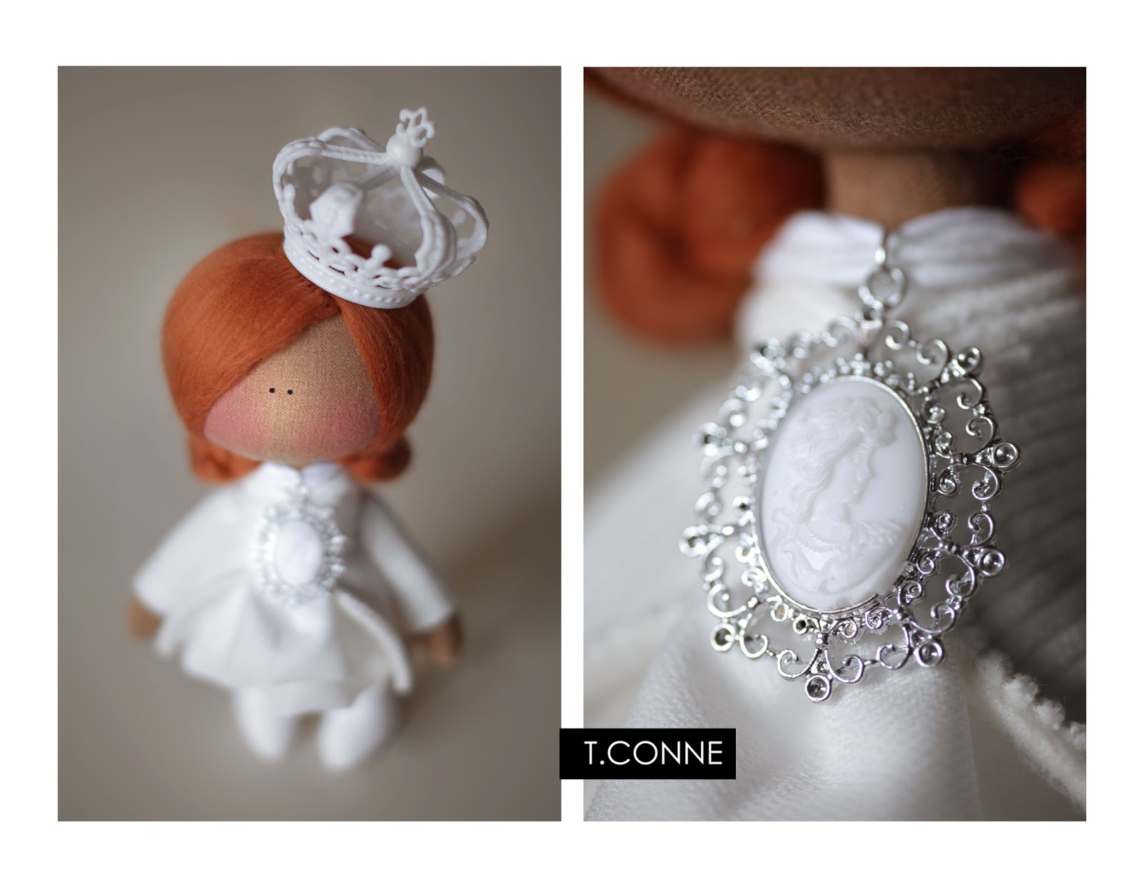 Материалы - хлопок, вельвет, трикотаж. Волосы - шерсть. Корона - фиг знает, я ее не делала.