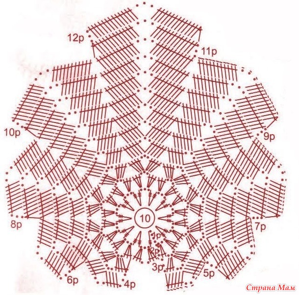 2) 6 в. п. в кольцо, в него 12 ст.б.н, 1 в.п. прикреплять к мотиву, 1 в. п. к ст б н, соединительными столбиками перейти к 4 ст бн. 1 в п, к следующему мотиву и тд.