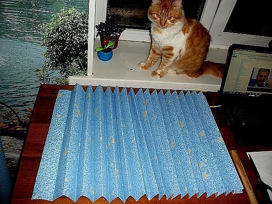 Берем рулон обоев (лучше моющихся или под покраску) и отрезаем нужную нам длину, учитывая запас для изготовления гармошки. Ширина должна соответствовать ширине окна.