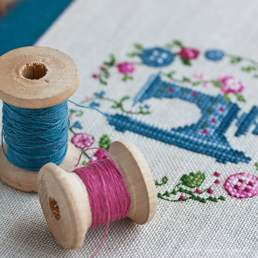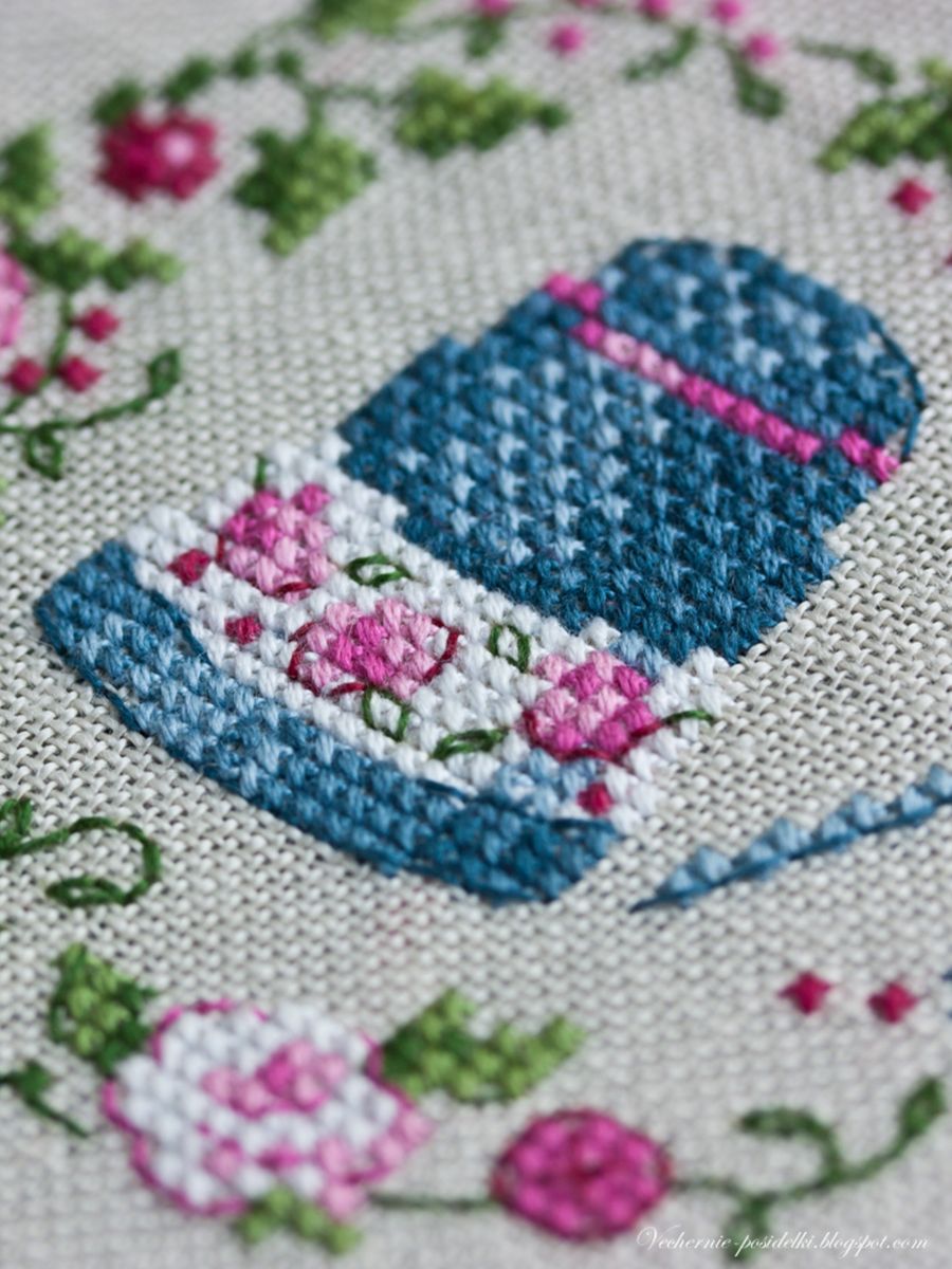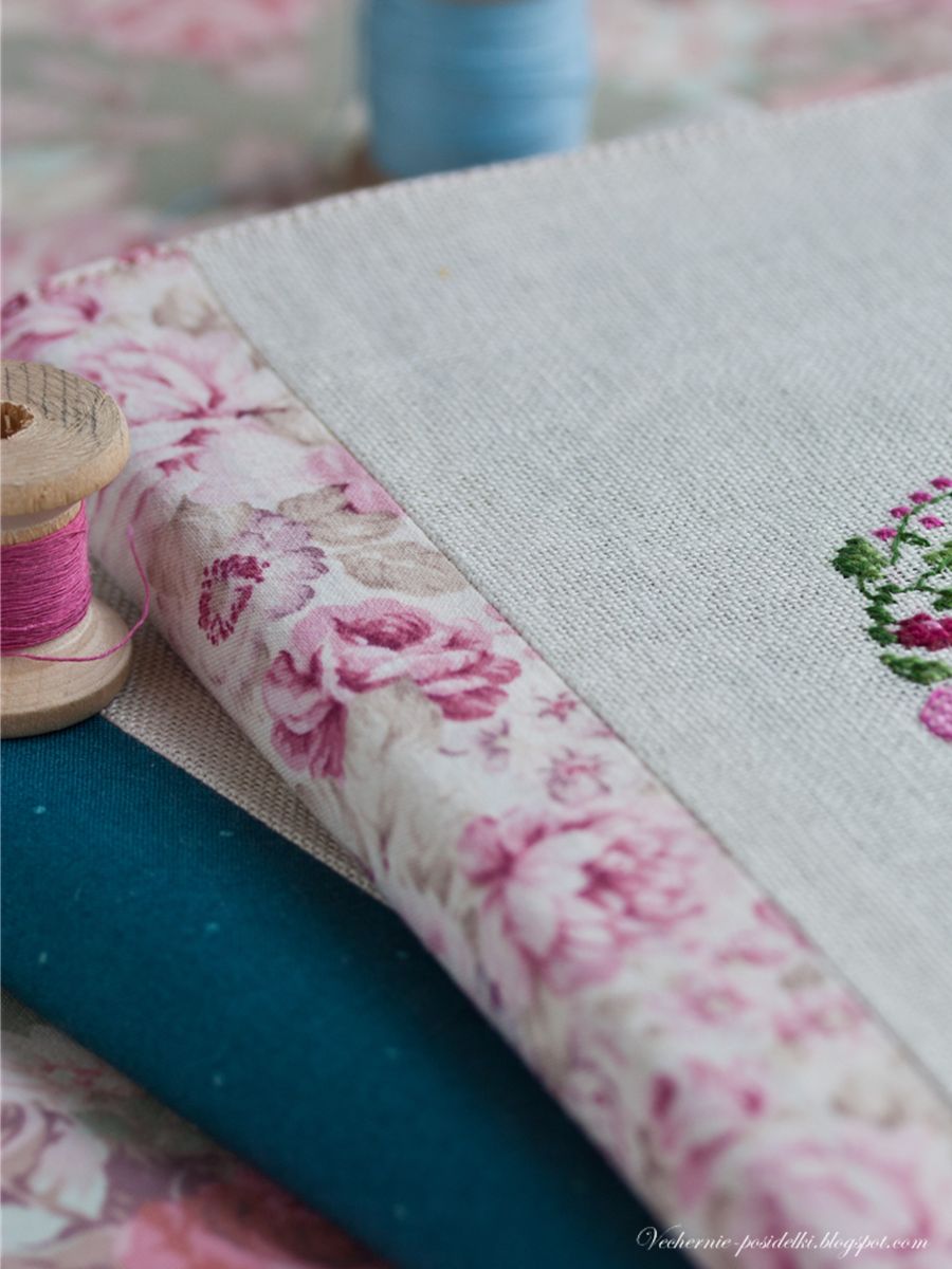 Осень на подходе и пора бы уже разворачиваться в сторону осенних красок... мягких, спокойных, сдержанных... Да и кое-кто уже подгоняет, дескать, желуди давай! :) Но пусть оранжевые нитки и бежевые ткани еще чуть-чуть подождут... Посмотрите какие цвета! Как было отказать себе в удовольствии вышить пару ярких розово-голубых веночков? Ни на секунду не осенних! :)