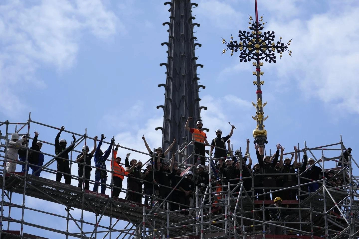 В этот момент стало понятно, для кого было оставлено несколько свободных рядов справа от алтаря. Пожарным и строителям аплодировали стоя все: и президенты, и священники, и премьер-министры, и богатейшие донаторы, приглашенные полюбоваться на дело своих денег, а на портал собора в это время проецировалось слово: «Merci» («Спасибо»).