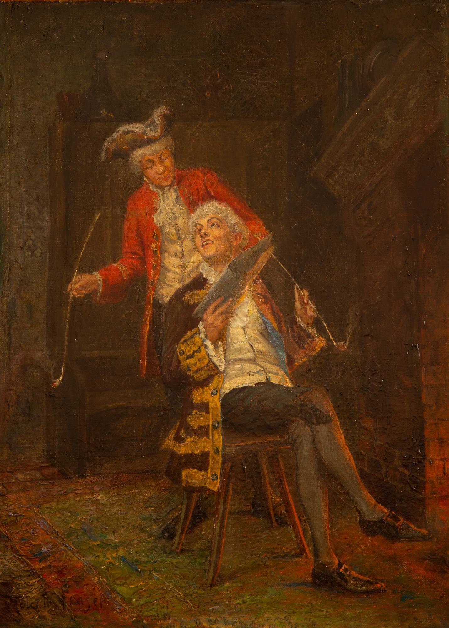 Men Smoking by the Fireplace