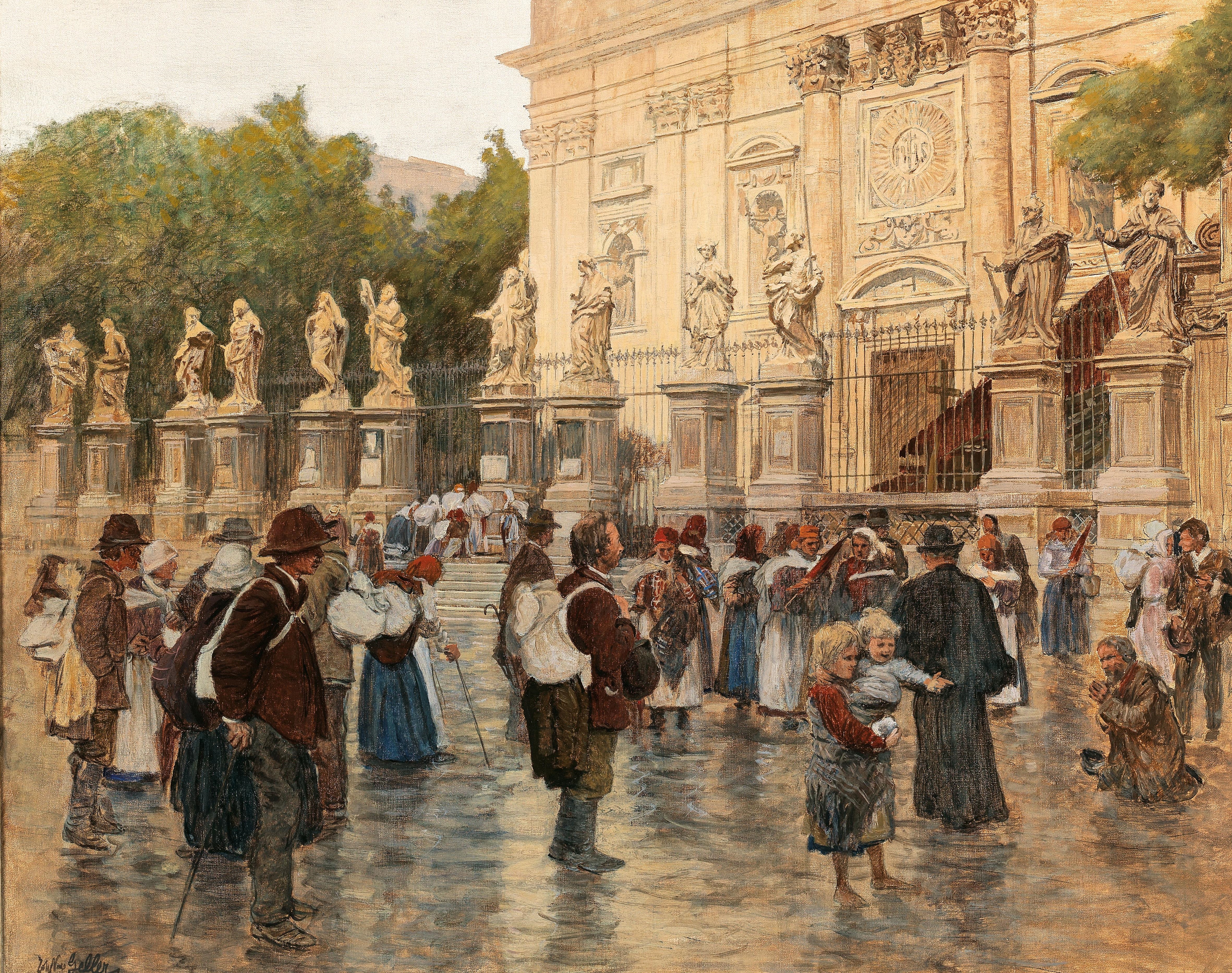 A Lively Scene before the Church of Saints Peter and Paul in Krakow