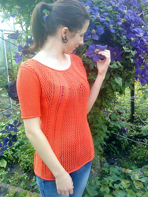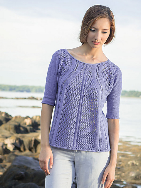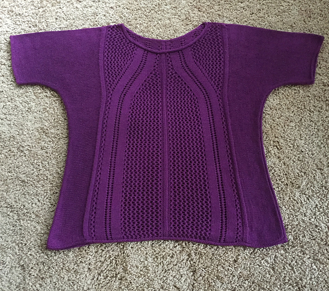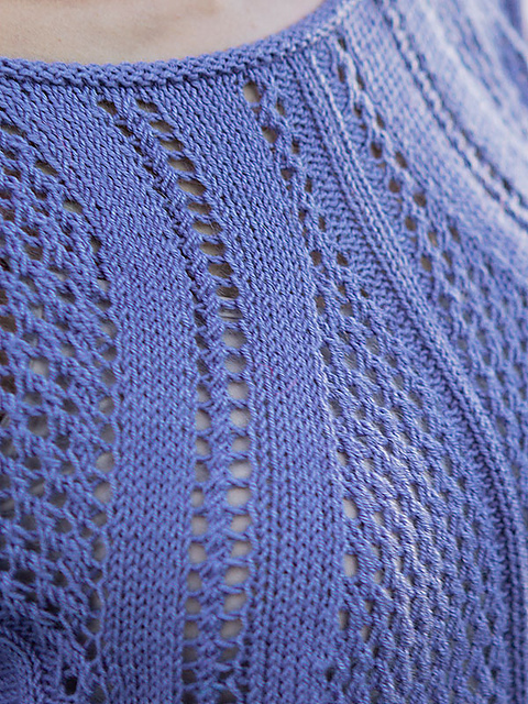 Центральные панели полочки и спинки вяжутся снизу-вверх и соединяются на плечах. Для боковых частей и рукава поднимаются петли по краям центральных панелей.