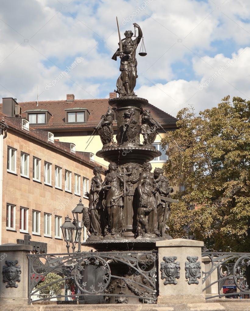 На площади Лоренца также привлекает внимание Фонтан добродетелей (Tugendbunnen, Б. Вурцельбауэр, 1589). Он является жемчужиной позднего немецкого ренессанса. Шесть Добродетелей в виде женских фигур окружают образ Справедливости.