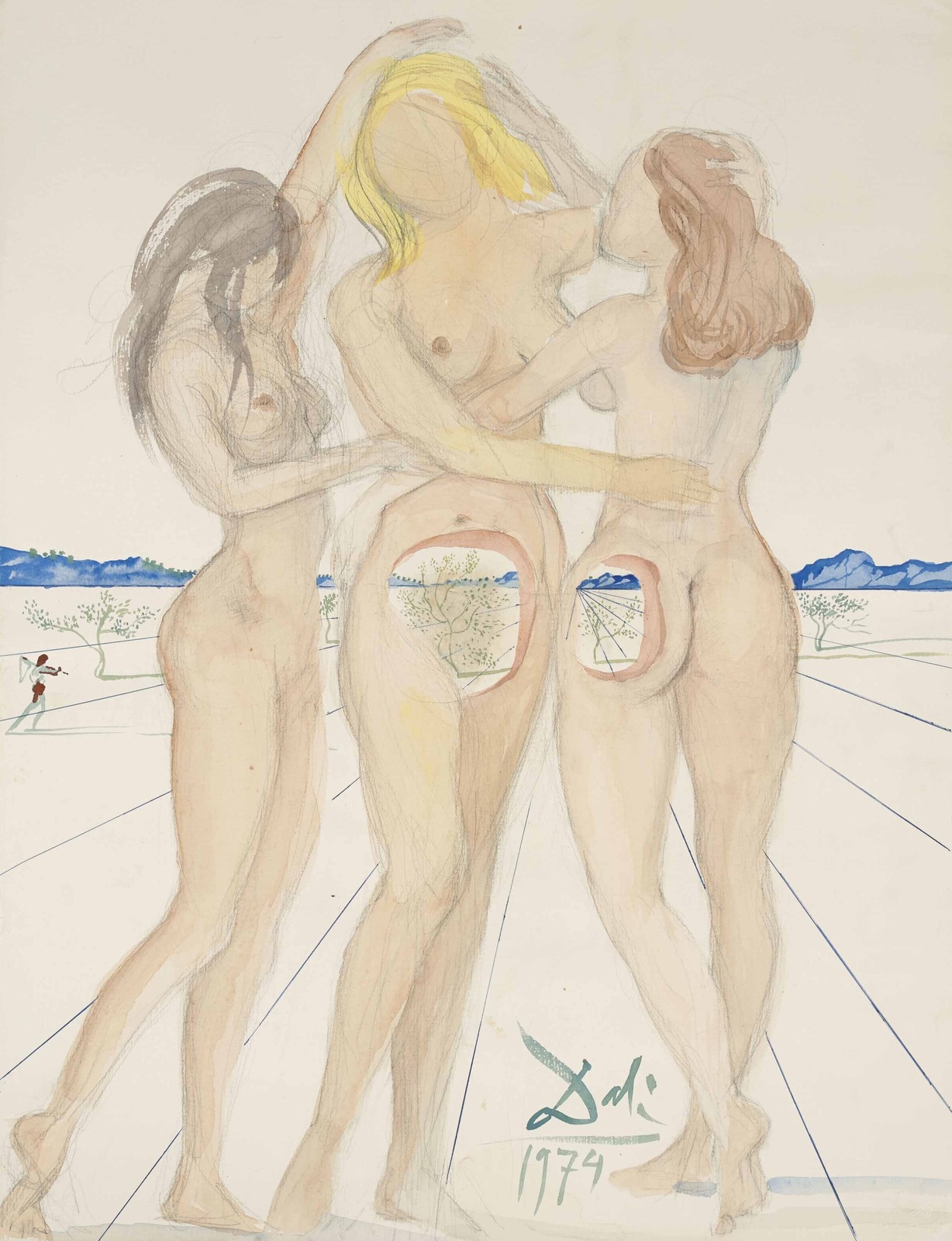 1974_Три грации (Les trois graces)_64.6 х 49.7_бумага, акварель, уголь и шариковая ручка_Частное собрание
