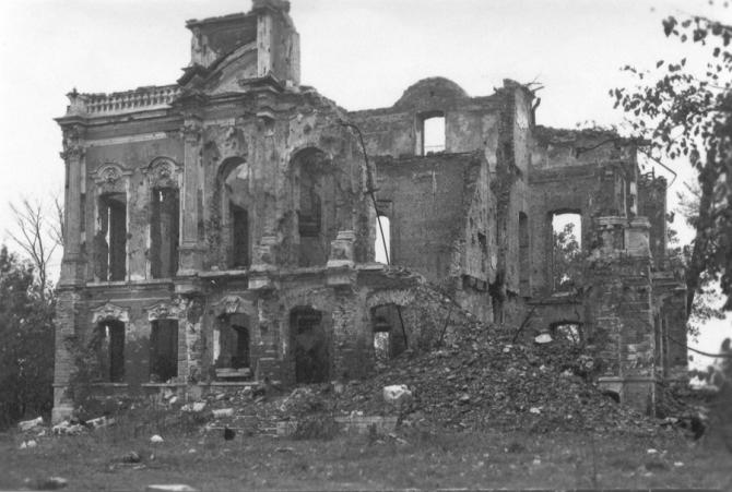 Двери в одном из помещений дворца (из книги М.М.Измайлова, с. 176) Дворец, церковь и сад были разрушены во время Великой Отечественной войны. Только в 1955—1960 гг. по подлинным чертежам А. И. Штакеншнейдера архитектором И. Н. Бенуа были отреставрированы фасады здания с приспособлением под базу отдыха Ленинградского инженерно-строительного института, а разрушенные исторические мосты заменены временными.