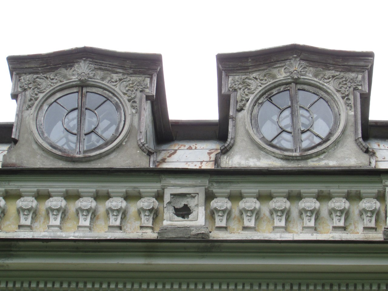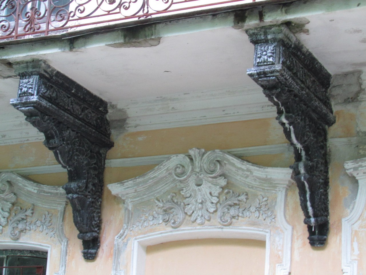 На лестнице были устроены несколько площадок, несколькими площадками, на которых раньше стояли чугунные корзины с цветами.