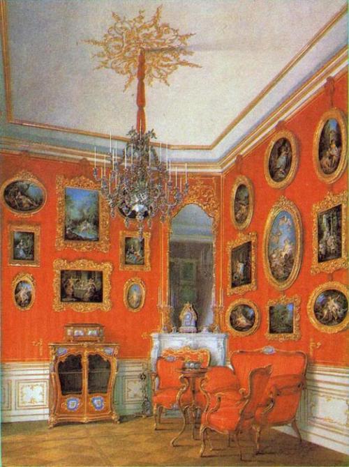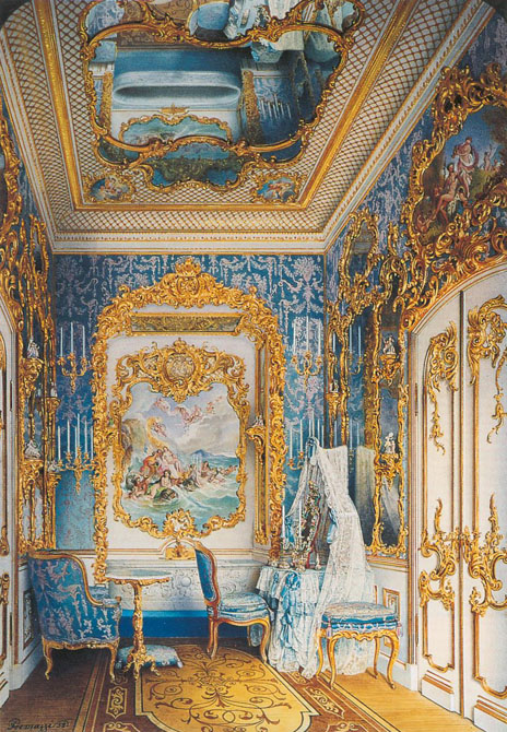 Отделка стен, мебель, картины, фарфоровые сервизы и статуэтки — всё было выполнено в стиле рококо. Даже посуда, хранящаяся во дворце, была строго согласована с общим стилем. Особенно хорош был чайный севрский сервиз с изображениями знаменитых фавориток французских королей. Дворец воспринимался, по выражению фрейлины А. Ф. Тютчевой, как «драгоценная безделушка роскоши и изящества».