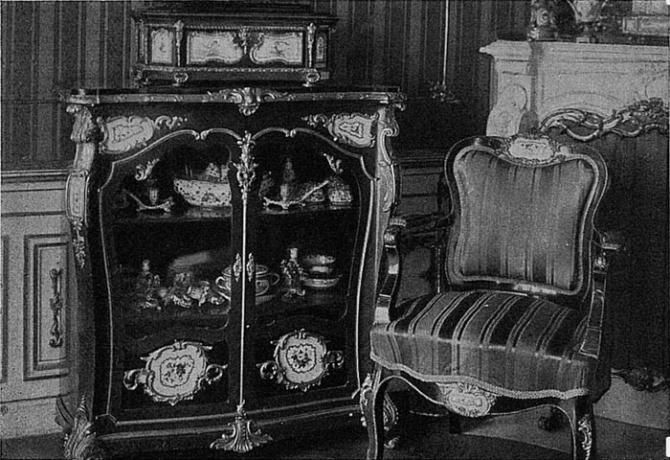 Фото шкафчика и кресла в Малиновой гостиной (из книги М.М.Измайлова, с. 173)