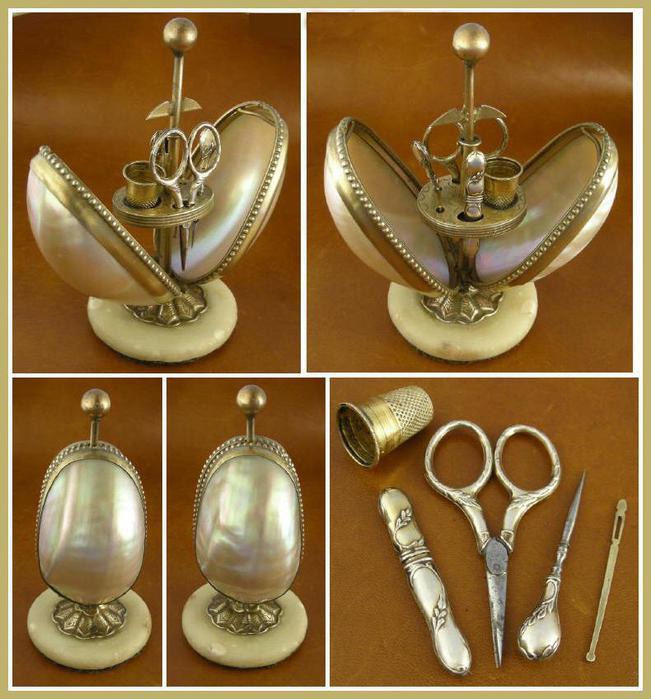 Во все времена дамы даже самого высокого положения любили заниматься рукоделием, и конечно же, инструменты для этого важного занятия часто делались мастерами-ювелирами из драгоценных металлов, и всячески украшались. Так что ножницы, наперстки, столики для рукоделия и игольницы уже сами по себе становились предметом искусства.