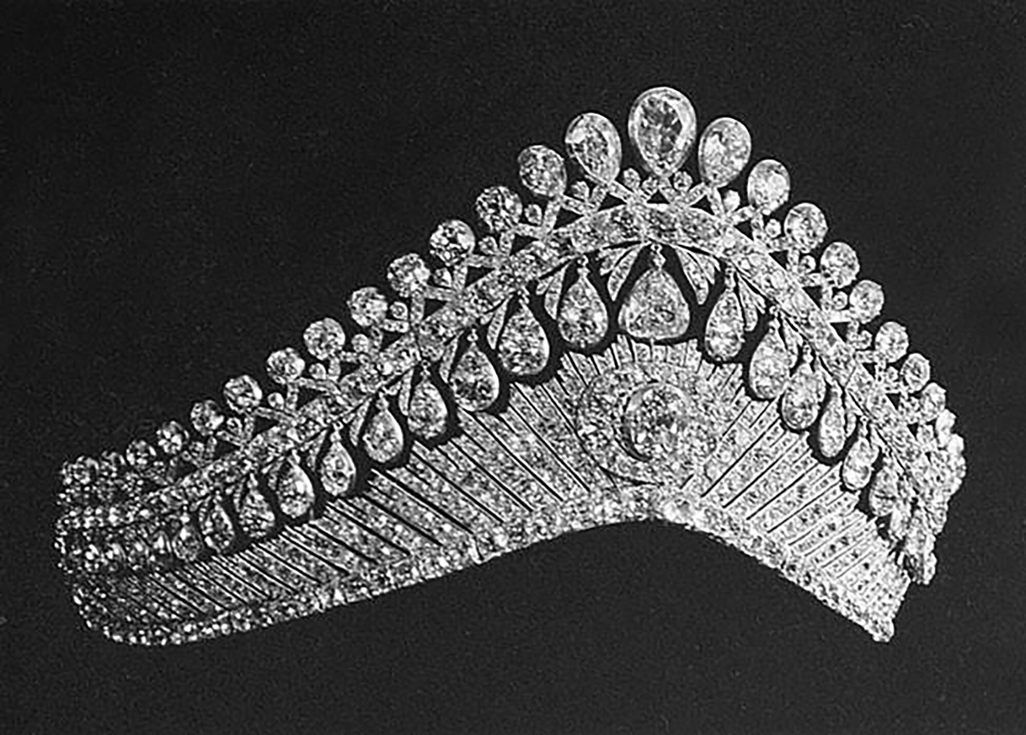 Оригинальная диадема с колосьями — фото сделано в 1927 году специально для аукциона «Кристи», на котором было продано множество фамильных украшений Романовых