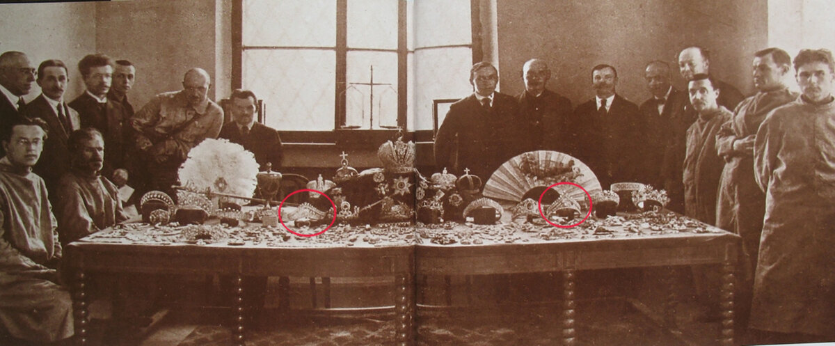 Фото, сделанное советской комиссией в 1920-х годах при оценке ювелирами драгоценностей царской семьи. Многие из них бесследно утрачены