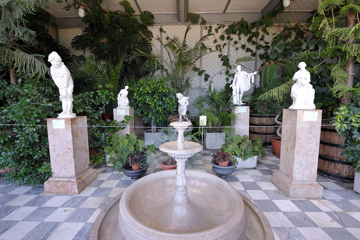 Украшает Парадную столовую и декоративный фонтан, выложенный майоликовыми плитками и обрамленный шлифованным диоритом. Над фонтаном расположен балкончик, предназначавшийся для крепостных музыкантов. Большую ценность в убранстве столовой представляют малахитовые канделябры, выполненные уральскими мастерами.