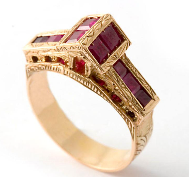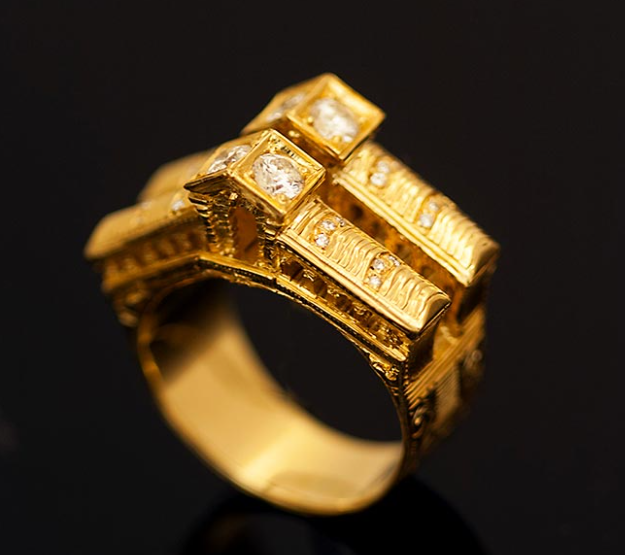 Кольцо с изображением моста Риальто из золота и бриллиантов