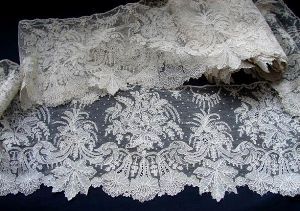 Популярность этого товара неуклонно росла, постепенно возводя Бельгию в ранг успешного и знаменитого государства. Ничто не могло заставить английских модниц отказаться от самого тонкого кружева, даже запрет Англии на его ввоз в страну, который ввелся, чтобы поддержать собственного производителя. Брюссельское, или фламандское кружево, считалось самым дорогим и являло собой причудливые орнаменты на невесомом тюлевом фоне.